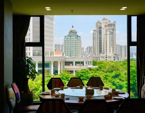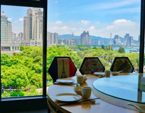 ...海景餐厅离嵩屿码头相当的近,环境也不错,一整栋有六层楼,饭点到时候来生意可是相当的好,坐满了人