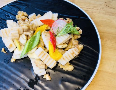 嵩屿码头附近不可错过的一家闽菜餐厅,竟然也有西餐菜品 周末难得去趟海沧,顺便过去品尝下海沧的餐厅,这次去嵩屿9号,餐厅的装修风格充满浓浓的闽南特色,在三楼用餐还可以欣赏海景。 虽然是一家闽菜餐厅,但是也看到西餐菜品的身影,比如法式羊排配紫薯球和迷你芒果鹅肝。餐厅里的海鲜也不错,口感新鲜,推荐竹笙浸大海蚌和会跳舞的大连鲍。 人均大约80元,比起岛内的同档次餐厅,性价比高了不少。