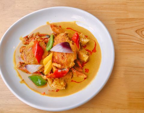 距离去鼓浪屿的嵩屿码头只有两百米,隐藏在嵩屿村庄里的宝藏餐厅 海鲜??闽菜??这家餐厅老板对自己的定位恐怕有什么误解哦?害我原本招待客户来之前以为就是一家普普通通的本地菜馆,菜上来的时候我都惊呆了!除了食材新鲜外,菜品完全比一些西餐厅或创意料理店做的还要更精致,更美味!「泰国咖喱蟹」挑嘴的同事和客户都赞不绝口,浓郁的咖喱汤汁,味道和浓度恰到好处完全一点也不会腻,实至名归的米饭杀手!「美味蛋挞龙虾」太好吃了这道!客户吃得心花怒放,摆盘又很精美。「迷你芒果鹅肝球」完全没想过芒果和鹅肝混合一起的味道可以这么清爽,这么夏天,要知道鹅肝一直是被我视为最容易腻的食材之一「会跳舞的鲍鱼」鲍鱼非常大只新鲜,下面铺满了酒香十足的鸡爪。除此以外,环境也非常值得夸奖,白天来无敌海景的包厢房,窗户外的海沧湾,蓝天,白云☁,就像一幅画。有点儿东西啊,这家餐厅。