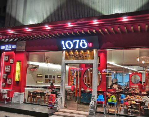 全新升级的1078,环境全部焕然一新! 装潢是宫廷风,超级贵气。一走进去,感觉像在逛皇宫。 墙上的壁画十分有趣精致。还有那摆着的小玩偶们,啊,这就是老北京的味~ 和其他火锅店不同,1078号宫廷涮肉坚持采用...全新升级的1078,环境全部焕然一新! 装潢是宫廷风,超级贵气。一走进去,感觉像在逛皇宫。 墙上的壁画十分有趣精致。还有那摆着的小玩偶们,啊,这就是老北京的味~ 和其他火锅店不同,1078号宫廷涮肉坚持采用矿泉水作为清汤锅的锅底,在涮肉时的口感会更加鲜美。 不加任何调味料的清水锅底,先涮肉,把肥油涮到汤里,等肉涮完了汤也就肥了,这时可以放入一些冻豆腐垫底,再放入一些白菜、粉丝,聊过大天以后,一吃粉丝,二吃白菜,三吃冻豆腐。最后用剩余的调料冲一碗汤,边喝边回味这顿美餐。 另外半边锅底是用鲜花椒、杭椒和菜籽油等制作而成的鲜椒锅,微麻微辣,适合不怎么能吃辣的湖(福)建人~ 驴打滚 外层沾满黄豆粉,细密香甜的黄豆粉包裹着软糯Q弹的麻薯,还有一点也不甜腻的红豆沙,不多不少,一切都刚刚合适。 手切花牛腱绝对是必点!红艳艳的花牛腱层层叠叠的盖在一起,纹路规则非常好看,涮起来又是另外一种样子。口感比较有嚼头,油脂不多。 手打鲜虾滑 没有装饰甚至还有些简陋的虾滑,师傅说虾滑都是现打的,特别的Q弹。 一个个的下到锅中,就这样坐等着小虾滑们浮出水面~ 蔬菜和菌菇,解解肉腻,而且拼盘更方便了想吃多种蔬菜的“麻烦星人”,再也不用纠结点哪几样、又怕浪费的事儿发生了。 不仅仅有火锅,还藏着各种来自北京的烤肉串。现点现串现烤,美滋滋的。 羊肉串经过炭火的洗练,本就香气四溢,又因椒盐辣酱的增色,变得更加入味油嫩可口、羊味十足,一点都不会腻。 蜜汁鸡翅 酥黄油亮的鸡翅,外表色泽诱人,咬上一口,糯香的鸡皮下包裹着的肉质是嫩而多汁,甜甜的味道吃起来像蜜汁鸡翅,老少皆宜,一个接一个,根本停不下来。