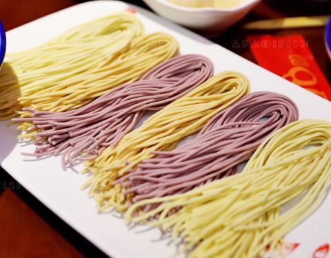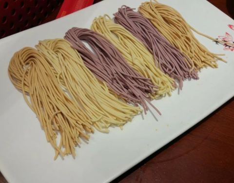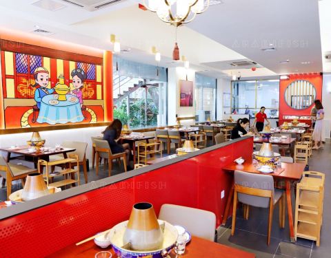 位于莲岳路的一家以宫廷风为主打的铜火锅,公交站点是莲岳路北站,下车后根据导航走很好找,路边而已。 两个人来吃,等了一个多小时,在前面没人等位的情况下,确实是有点久。 选了番茄和泉水的鸳鸯锅,泉水就是矿泉水,没有任何味道,这家的酱料是按人均收费的,一桌几个人就得点几份酱料,每人8元,之后无限添加,但是不是自助。我们选了蒜泥香油+麻酱,两份拌在一起超级好吃的,没试过的亲可以试试。 点了四个肉,最满意的是鲜切花牛腱,超好吃的这个肉,烫几秒就能吃,忘记了烫久了也不柴,口感真的很好。 三色面是看着颜色点了,没什么特别之处。 火烧的话就跟春款差不多,差别在于春款比较软。驴打滚的话是糯米做的,中间的夹心是豆沙。这两款最好是在火锅来吃前先吃,不然等火锅涮完后再来吃,根本吃不了。