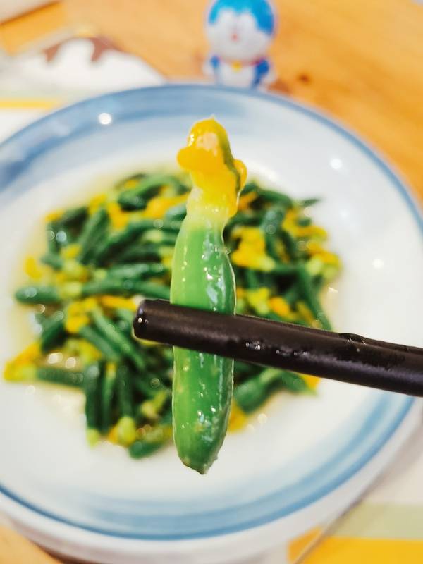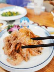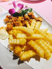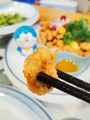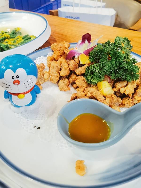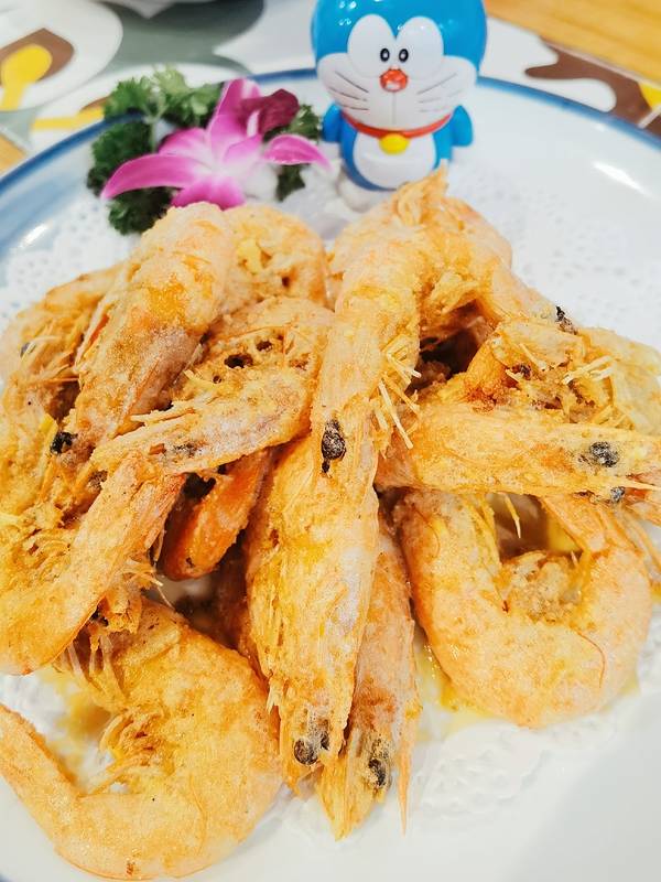 炸得鲜黄的海鲜上面裹着咸蛋黄,吃起来外酥里嫩,淡淡的咸蛋黄香味与鲜虾的结合,吃了一只还想来一只,感觉停不下来了。