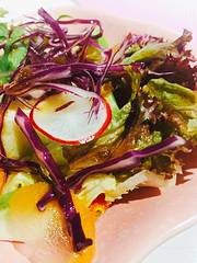 提前预约到店,位置醒目好找,粉色的大门漫适合拍照的。虽然是两层小楼倒是位置感觉还是些许拥挤。 喜欢芝士焗大虾的口感,可惜大虾不新鲜,就是吃个味道。 大福也是吃起来偏甜腻的味道。 对寿司比较期待,但是米粒感觉偏硬了。反倒是普通的沙拉很清爽,毕竟不能太过期待。