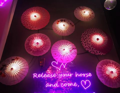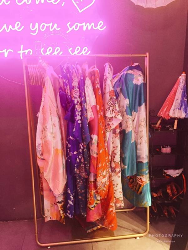 一家网红餐厅,果然超粉嫩的,一进来就被粉色的花墙吸引,还有和服👘,雨伞☂️,木屐,蝴蝶结🎀等装饰物,感觉更像一个小影楼,可以随意搭配拍照,圆你的和服梦。