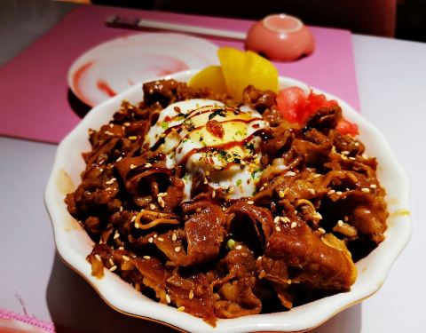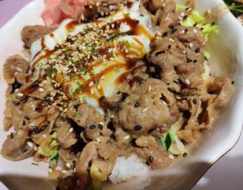 - 乾坤照烧牛肉盖饭,真的铺的满满的牛肉,上面有溏心蛋,吃的时候搅一搅,滑嫩的口感,超赞。少女心爆棚
