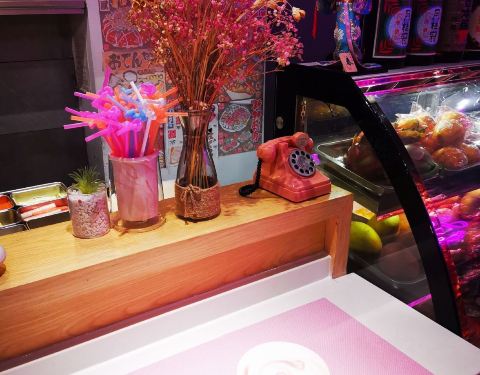 一家精致的日料店,位置不多,小小的挺温馨...一家网红餐厅,果然超粉嫩的,一进来就被粉色的花墙吸引,还有和服👘,雨伞☂️,木屐,蝴蝶结🎀等装饰物,感觉更像一个小影楼,可以随意搭配拍照,圆你的和服梦。