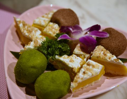 大福 吃起来口感绵密,不错的甜品。 清新芒果寿司卷也不错,有蟹子,沙拉,芒果结合,一口一个很满足