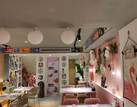 一家网红餐厅,果然超粉嫩的,一进来就被粉色的花墙吸引,还有和服👘,雨伞☂️,木屐,蝴蝶结🎀等装饰物,感觉更像一个小影楼,可以随意搭配拍照,圆你的和服梦。 一家精致的日料店,位置不多,小小的挺温馨...