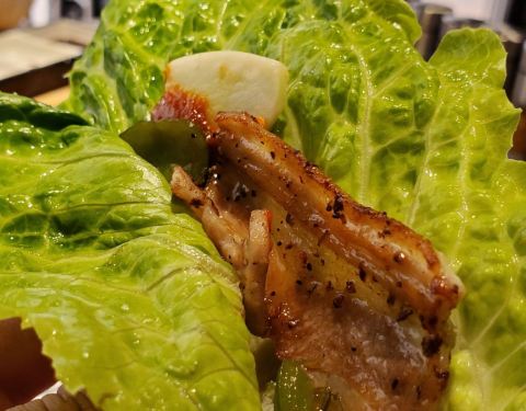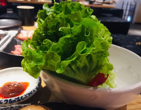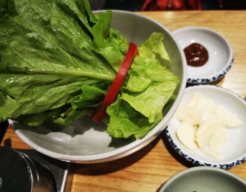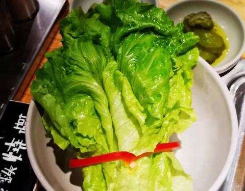 烤完肉,还有一份招牌炖肉份量真的超级足,两人份吃得饱饱的。生菜还用红椒捆起来好看的。搭配生菜解腻