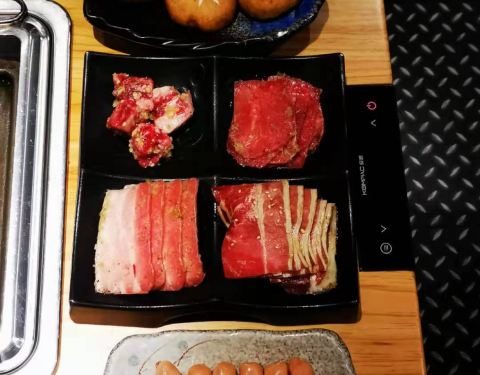 ...五花肉和中落小排等,都非常的新鲜,自己动手烤,有趣又美味,工作人员也会勤快地过来指导,换烤盘等
