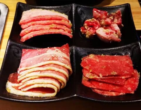 厦门各式各样的烤肉店层出不穷,爱吃牛肉的我也做了些功课,来到万象城的焱铁烧。它家的招牌是和牛,牛肉多汁细嫩、风味独特,肌肉脂肪中饱和脂肪酸含量很低、营养价值极高。烤制过程喷香扑鼻,是纯正的牛肉香味。不需要用到烧烤纸,也不需要刷油,几乎无烟,比其他烤肉店要健康很多。每桌都有搭配一排调料,可以满足不同口味需求的人群,服务方面,添加茶水,收盘等都很及时,推荐热爱烤肉的吃货前来!