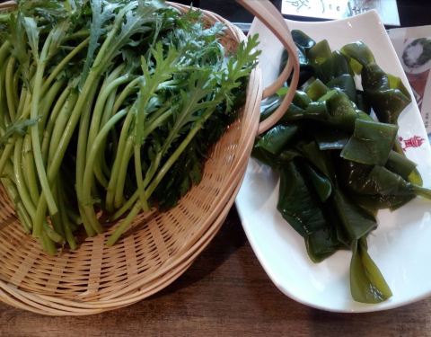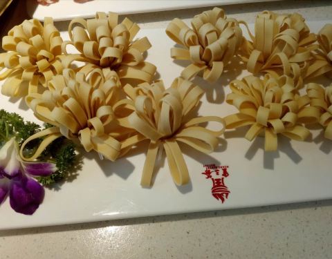 |茼蒿^:新鲜,火锅菜中很好的选择。 |豆腐皮^:这个摆得就像一朵朵盛开的菊花,真的好吃又好看