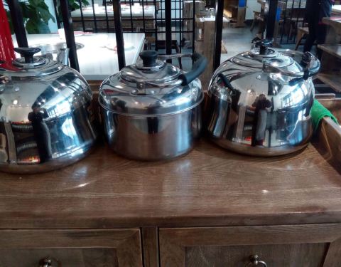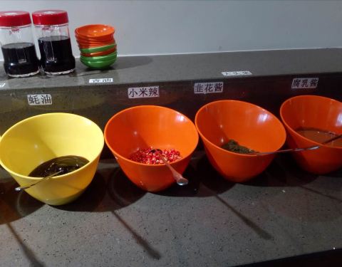 这家皇三爷位置略有些远!距离大融城近一些!但也要走一段路!好在不虚此行!就餐大厅在二楼!收拾得雅致干净!视野开阔!楼下可以停车!不错!调料台也整整齐齐,并且每一个都标名名称!这样容易选择!好!