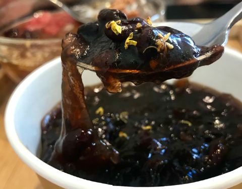 黑豇豆混地瓜粉,却很像红豆沙混合藕粉的口感,但藕粉是糯而嫩的,豇豆莳却很有韧性,拉都拉不断,一勺子可以把整碗舀起来。 口感温温热热的,能吃到煮糯的黑豇豆,还能闻到桂花的香气。 大满贯冰粉 也是他家点击...