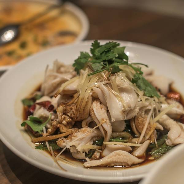 觉得普通,既没有老菜馆的热闹也没有老菜的味道。 午餐,提前定位,因为第一次预订不顺利我们还改了聚会的时间,当天到的时候一楼大堂人并不多,加上室内暖气不足,冷冷的气氛。 古法鲍鱼,味道好吃,印象深刻。 黑椒青酱牛肉粒,摆盘很好看。