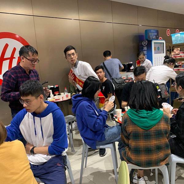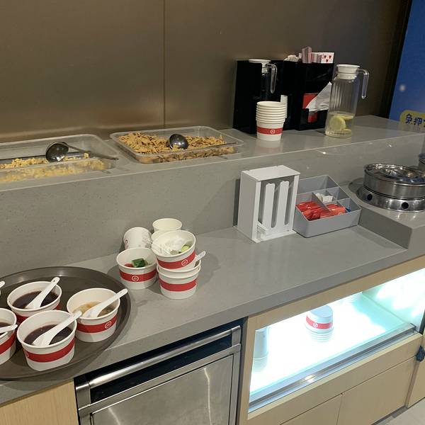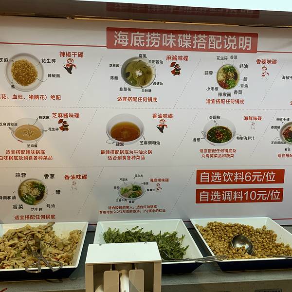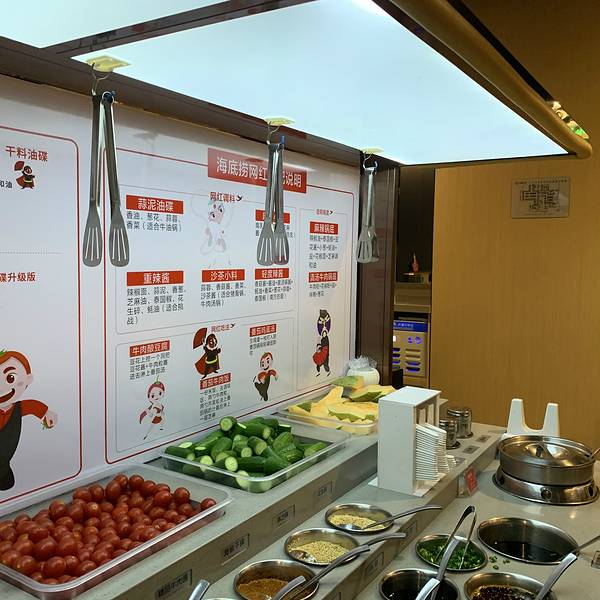 还记得海底捞刚刚开业非常多人排队,足足等了我们3.5个小时才能就餐。 候位区有服务员拿凳招呼...还会送上小食盒。这些小食都是免费滴...水果任拿滴...酸梅汤、柠檬水任饮...小食盒上的食品,有山楂饼、薄荷糖、爆米花、青豆...吃完了可以叫服务员加。水果的品种就有:哈密瓜、西瓜、荔枝、圣女果...估计你唔入去吃饭,净系吃小食都可以吃饱了。 终于轮到我地吃饭,店内的环境都很干净整洁,通风设施做得几好,不会闻到很大的火锅油烟味。 一坐底就有人为你递上温暖的毛巾擦手,话说一餐饭下来总共递了3次热毛巾,擦了3次手...已经干净到不能再干净啦...另外值得一提的就系去完WC出来的洗手池,都有一位服务人员为你递上纸巾擦手...五星级酒店都无咁的服务。除了之前大家所说的为女生提供m巾之外,还有牙线,牙刷等等的东西提供. 服务人员为长发女生提供的发圈和专门装手机的塑料袋...还会为戴眼镜的朋友提供眼镜布。为每位客人提供围裙...很细心的服务。水果和酱料都系自己去拿的,需要另外收费。要了鸳鸯锅底,看上去汤底很浓,色泽几靓,料都很足,而且还放了青瓜。 餐前小吃,拍青瓜和腌萝卜。不知为何两样东东都很咸...另外如果这个时候你想饮酸梅汤或者柠檬水的话,需要另外再加钱的。 总体来说他的汤底和食材都可以,辣的部分木有试到...清汤的汤底都几鲜甜,基本上不蘸酱料都够味。如果大家想睇拉面表演,就必须要点拉面...就有表演睇...总的来说味道没有什么特别,就是服务不错。