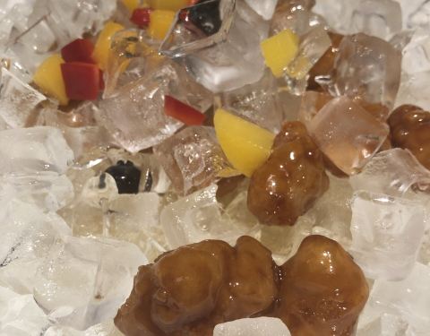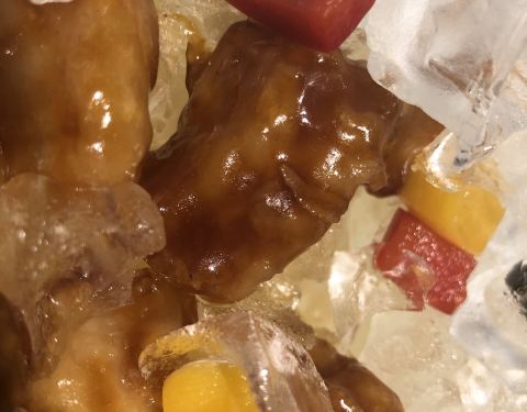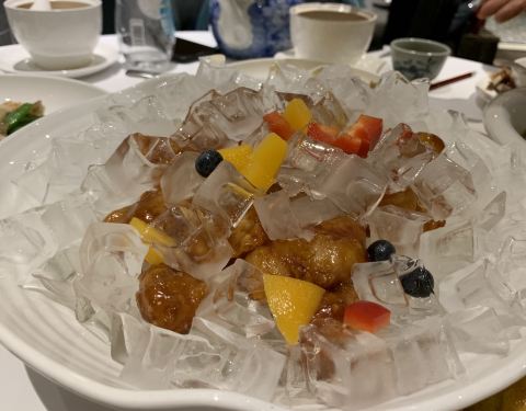 冰镇咕咾肉比较特别,覆盖在表面的冰块晶晶亮也赏心悦目,服务员贴心提醒要在二十分钟内食用