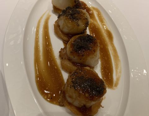 ...多人在等位,等了40分钟终于到了,不过也算值,这里的出品很好,冰镇咕噜肉,黑松露煎带子都很棒哦