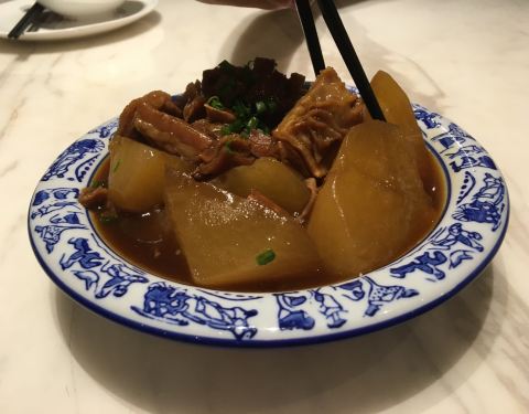 陶陶居的午饭直至4:30才结束。始于1880年的百年老字号,茶位费每人6元。百年烧鹅是招牌之一,88元/例,火候好,话梅味的蘸料也用足功夫。海皇粉丝煲、柱侯牛腩炆萝卜也显出厨师的水平。