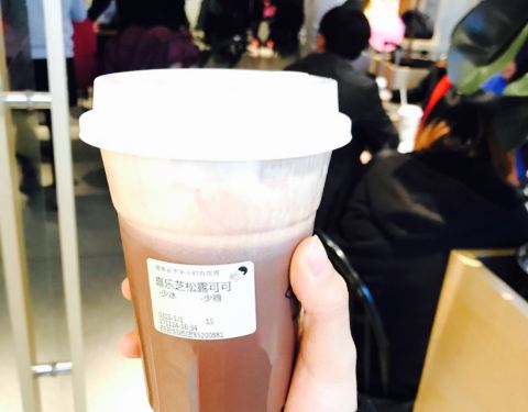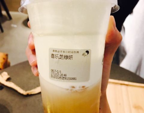 跟男票逛街无意中来到白云凯德广场的喜茶分店,这家喜茶我还是第一次来,门口竟然没人排队。我们就赶快走进店里去点单了嘿嘿。这家喜茶分店在凯德广场一楼UR专卖店旁边,特别显眼好找。我之前每次路过都见很多人...跟男票逛街无意中来到白云凯德广场的喜茶分店,这家喜茶我还是第一次来,门口竟然没人排队。我们就赶快走进店里去点单了嘿嘿。这家喜茶分店在凯德广场一楼UR专卖店旁边,特别显眼好找。我之前每次路过都见很多人在排队,当然喜茶分店排队现象也早已是见怪不怪的了。最后我点了杯芝芝芒芒,我男票点了喜乐芝松露可可,这是我推荐给他的。之前他已经喝过我在喜茶买的柠檬茶了,这次就推荐巧克力系列的给他尝尝。看样子我男票也很满意,我作为吃货推荐的食物肯定不是盖的啦哈哈哈。就近而言,这家喜茶的环境比百信广场那家很多了,如果人不多的情况下,以后跟男票可以再去凯德的这家喜茶买东西喝。