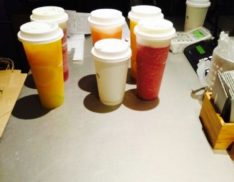 其实我感觉跟攻略饮料口味差不多啊,哪儿有那么神奇的好喝,不晓得朋友每次来逛街都要排队近一个小时干嘛,先到先等她还的帮她来排队买个满杯西柚,真是受罪,味道也就那样啊,果汁兑糖稀,价位也还行,好喝是好喝不过没那么受捧的程度吧,非要花那么多时间喝个东西现在的人价值观是怎么了,无法理解,亲爱的朋友我当你朋友帮你排队,是重情义,下次别叫我了。