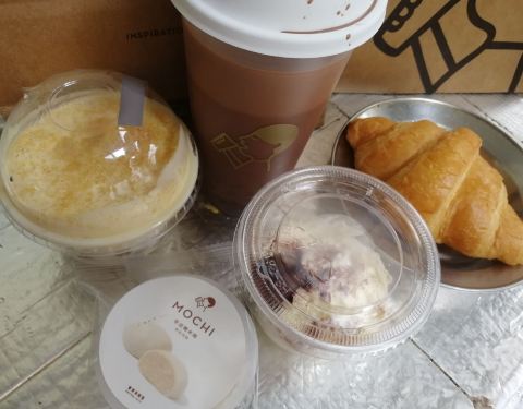 趁着三八节半价活动又继续叫外卖了,喜茶的外卖很火,经常都接单太多会休息停止。幸好附近有几家不同的店铺选择。这次同样叫了空气巧克力波波,另外还叫了牛角流沙包,芋头糯米糍,豆豆波波杯。这次空气巧克力波波要了温的,感觉口感没有冰沙的好喝,芋泥波波比黑糖波波更软糯。豆豆波波杯同样好吃。牛角包外皮是松软的,不是脆皮的,做得不够好。芋头糯米糍比较软糯,还不错。