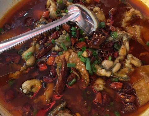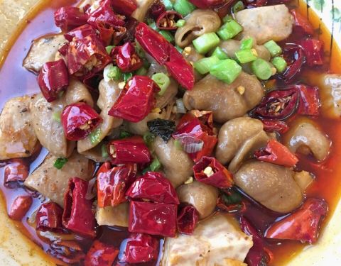 - ...鲈鱼、桂鱼,小碗肥肠非常的入味,里面还有芋头,吃辣的搭配上毛根竹蔗,还要是冰冰凉的,太爽了……