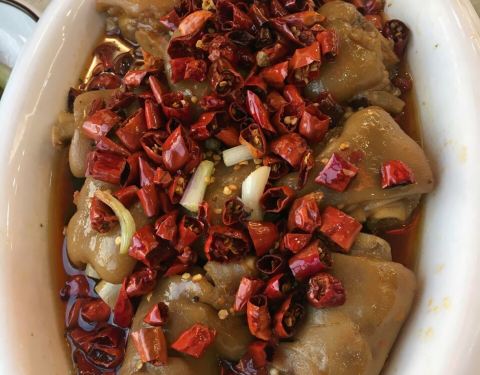 美容猪蹄,炖煮的很透,老人家也可以品尝,小碗肥肠很好吃,个人觉得比干锅肥肠好,里面还有芋头,搭配着,味道很棒……焖煮的很透。