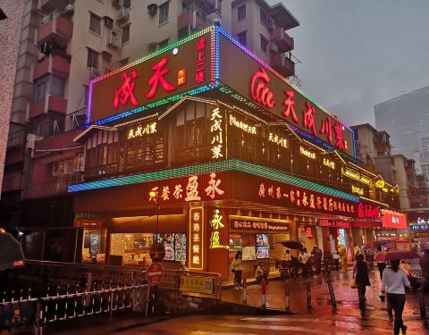交通一直以来都是特别的方便,从地铁站出来就是了,旁边就是江南大酒店,对面就是广医二院,算是黄金十字路口,这天过来的时候下着小雨,灯光亮起来,特别的美。