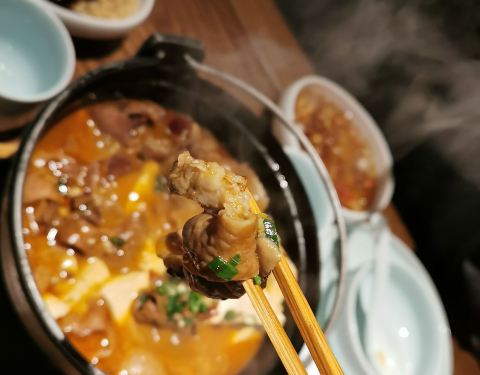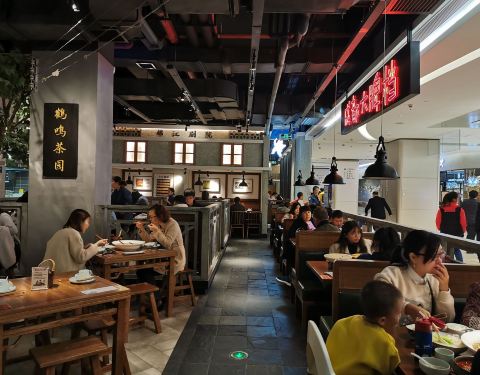 地点:万胜围的保利广场5楼 环境:有种成都宽窄巷子的味道,铜壶装水,木桌椅。 糖油果子,8块一串,15块2串,一串3个,甜甜蜜蜜。 红油肥肠,热辣辣的红油锅底,配上肥肠,豆腐,入味又好吃。 虾仁蒸水蛋,...
