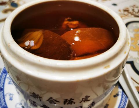 主打陈皮菜的一家小餐馆,地方不大,没有洗手间是败笔,胜在小哥哥很帅服务很到位 菜品价格在珠城来说算中规中矩 陈皮川贝桔梗炖雪梨料很足,陈皮大大块,不过不知道年份 香口爽脆陈皮骨例牌有四块,是加了陈皮粉...