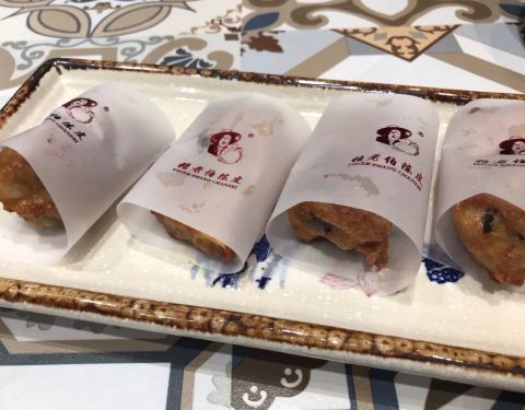 知道在广州冒出来了一家吃陈皮菜的专门店,发现在公司附近新开了一家分店,工作日的中午特意过来尝尝。餐厅位于花城大道,在南天珠宝广场对面马路,要往巷子里面拐进去一点,和其他分店一样,它也是有卖陈皮和陈皮的特产,例如:桔子普洱茶、陈皮干等等,有需要的可以直接单独购买。 听说工作日的正午时分通常会开始等位,所以我特意早了一点过去,慢慢地客人就开始多了。店里的装修带有点古色古香的味道,餐具都是景泰蓝特色,餐桌、椅都是木制的,比较重,服务员很热情,全程招呼得很周到。陈皮骨是必点的,是他们最招牌的招牌菜,一份4块,38元一份,外表看上去像是广东菜的蒜香骨,也是炸的,味道不错的,吃起来有点甜味,更多的是吃出来了陈皮的甘甜,我对于香口的菜式本来就很喜欢,所以两个人分四块陈皮骨,根本不够,而且排骨除了那根大骨头以外,就没有多少肉了,后来还是多加了一份。 墨鱼饼分量可以,味道也不错,吃着可以感觉到有墨鱼粒在里面,蘸上酸甜酱吃味道更佳,美中不足的就是煎得太过火了,明显有点太黑了,这样子也上桌,未免影响到餐厅的出品形象。 店里唯一的一种糖水是陈皮红豆沙,单点是10元一碗,如果你有付茶位费,8元一位,那么用餐完毕,他们会免费送你糖水,一位茶送一碗糖水,但是如果你只喝了免费的白开水,糖水就没有赠送了。糖水做得不错,值得拥有。