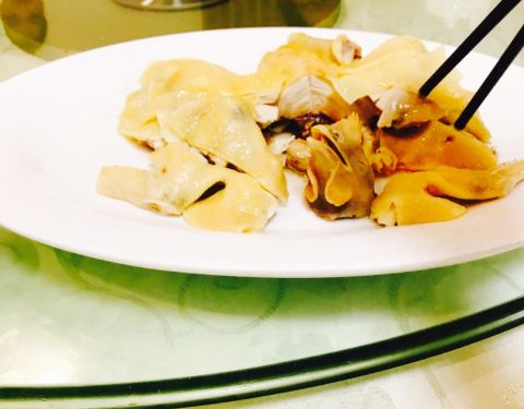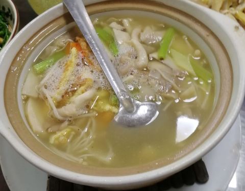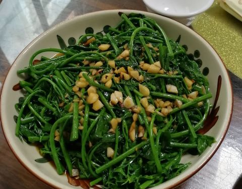 新窖路上,晚上8点去到,还有饭吃,真是庆幸??,但是只有两桌,我是其中一桌,也许是人少的原因,服务生十分热情款待,这边的菜式挺多的,有刺身,鱼生,粤菜等,非常推荐图一的菜式,豆角炒肥肠,在别的地方吃肥肠,我最多能吃一块,因为我觉得一口咬下去,肥肠的肥油全都挤出来,好恶心,但这家的不会,肥油有稍作处理,感觉不油利,配上紫苏更是完美。上汤桑叶(图三),也爽口。还有送的椰丝包,不挑不腻好入味。