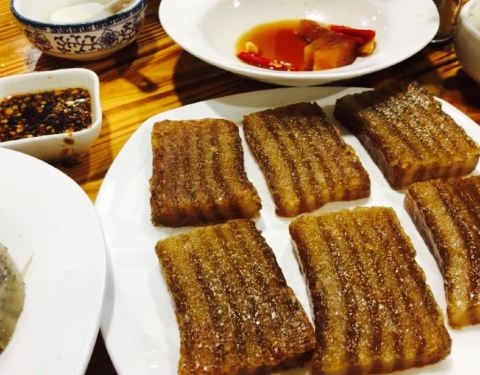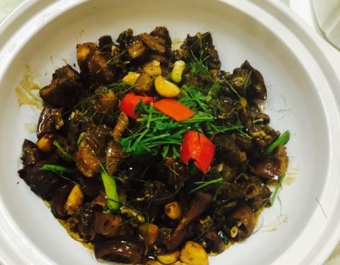 还没来得及带朋友来,有人就要过来继续“试菜”。避风塘茄子?? 。里边夹着点鱼肉滑,那避风塘炒得好香,惹味,带点瑶柱海味的香气。南瓜??煎堆,通心的通心的通心的,不油不腻,热吃的话会脆脆的。凤眼果焖排骨,本来想要焖鸭的但是要半只起,三个人太多所以要了排骨,排骨没有任何的特别腌料加工没有嫩肉粉味道,这是不错的,凤眼果粉粉的像那个栗子,配着排骨味道做得很入味。前菜点了个牛辗,味道好香,麻麻的,带点辣椒味不错,可惜份量太少了点,一下吃完觉得还没吃够。白色的小小的圆圆的,是这里赠送的燕麦包,皮不错,不粘牙,里边就小小的燕麦陷。这里挺多避风塘的菜品,下次可以继续试,估计,又很快变成饭堂????遥远的食堂。