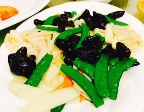 我们还定点了藕尖爆牛肉,上汤桑叶,花甲肉小炒皇,杏味鱼球(名字记不清了),出品都不错