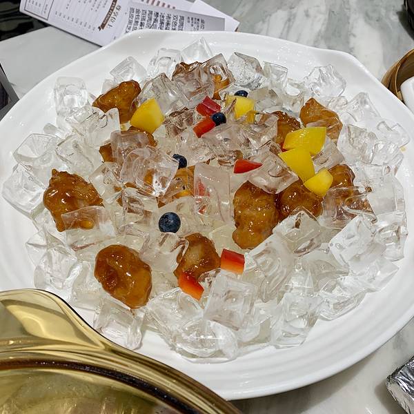 芒果蜜蜂鸡扒,一口芒果一口鸡扒,超满足,芒果口感软绵,鸡扒香酥可口,加上蜂蜜,真的很棒。陶陶居虾饺,虾丰富料很足,能吃出新鲜。黑松露带子,很完美。