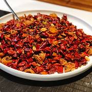 川味鲍鱼辣子鸡 三只鲍鱼,辣子鸡块小到肉眼要仔细挑的程度,干辣椒倒是很多,辣子鸡味道是不错,但鸡块能不能稍大一点哩。