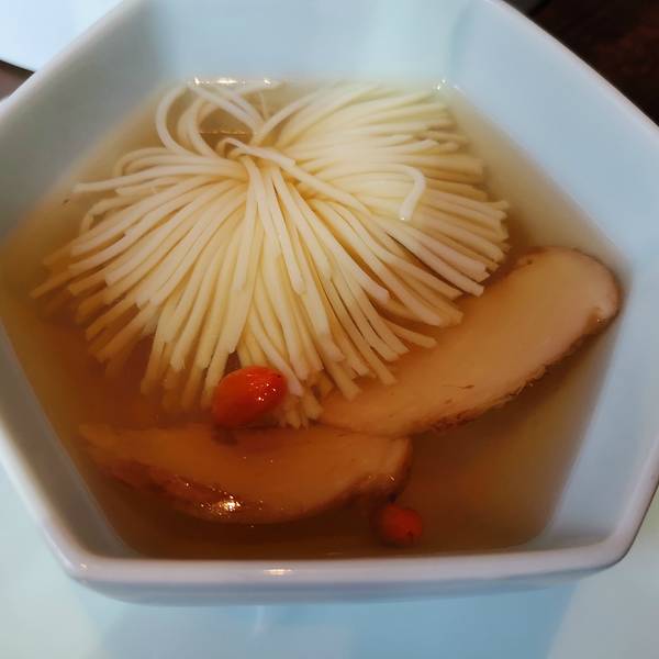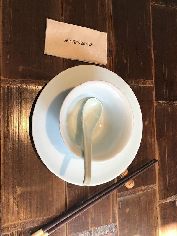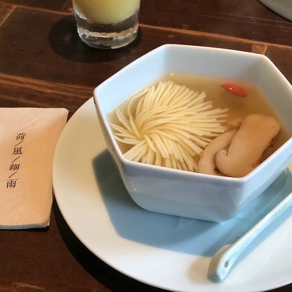 和贤良淑德的某只几个月未见,趁春光真好,约个午餐。 3月下旬的店里,受疫情影响,只有两三桌。环境看起来更像是素食餐厅或是古风茶馆。 梅酱小排 糖醋小排哦-~梅子酱味道不明显,也算是久违的糖醋小排了。 油醋水云丝 清新爽口的油醋水云丝,开胃小菜。 川味鲍鱼辣子鸡 三只鲍鱼,辣子鸡块小到肉眼要仔细挑的程度,干辣椒倒是很多,辣子鸡味道是不错,但鸡块能不能稍大一点哩。 松茸汁烩豆腐 豆香味十足的豆腐煲,没有豆腥气。干虾仁和松茸提香,汤也很浓郁。豆腐星人表示不错吃。 时令蔬菜 清炒时蔬,多吃蔬菜补充叶绿素。 老上海酸辣汤 料足味美的一大煲酸辣汤,吃也吃不掉的大分量。 海皇干捞粉丝 起先吃起来觉得香,吃到后面有点小油腻。虾仁多多。 五常贡香米 米饭大概是温的,一碗两人分吃刚好。 双人套餐的分量应该足够三个人吃咯。