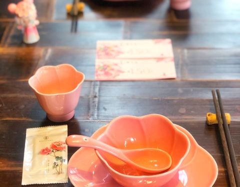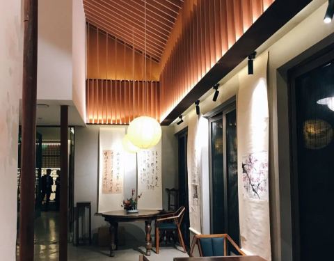 3月下旬的店里,受疫情影响,只有两三桌。环境看起来更像是素食餐厅或是古风茶馆。