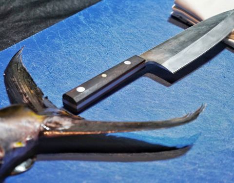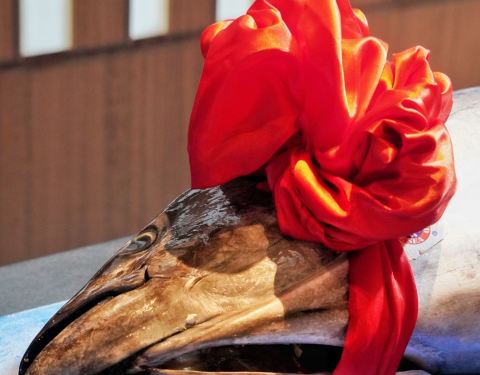 开鱼后的蓝鳍金枪鱼肉马上吃,新鲜嫩滑,爱刺身的人不能错过