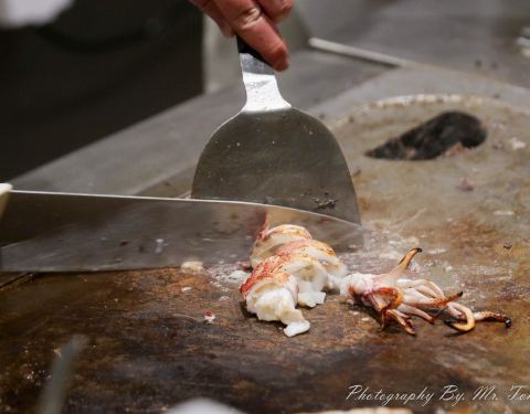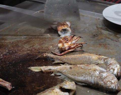 这是今年第二次有幸欣赏到蓝鳍金枪鱼的开鱼盛宴啦,一家酒店的自助餐能做到请日本大厨为现场顾客上演一场蓝鳍金枪鱼的开鱼秀,恐怕也只有希尔顿能做到了。 日本大厨现场开鱼,引得现场掌声连连,每位顾客都要拿出自己的手机记录这一刻。 开鱼后的蓝鳍金枪鱼肉马上吃,新鲜嫩滑,爱刺身的人不能错过。 还有铁板区也是人满满的,牛排、羊排、鱼肉在铁板上变成一道道美味的铁板烧。