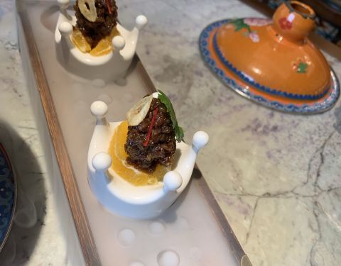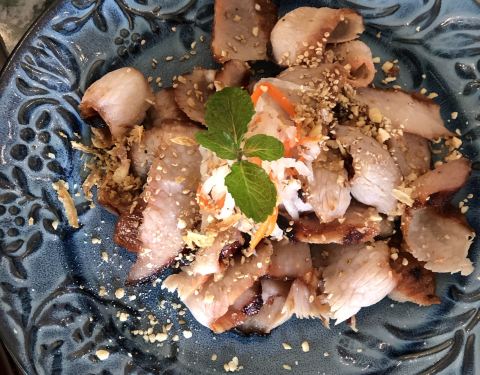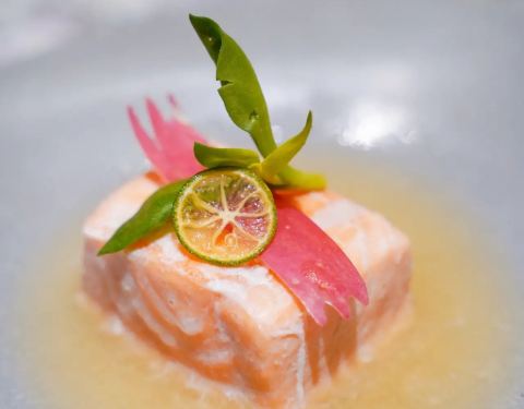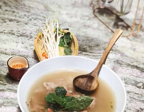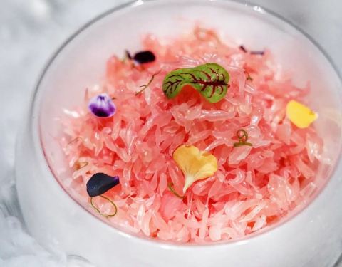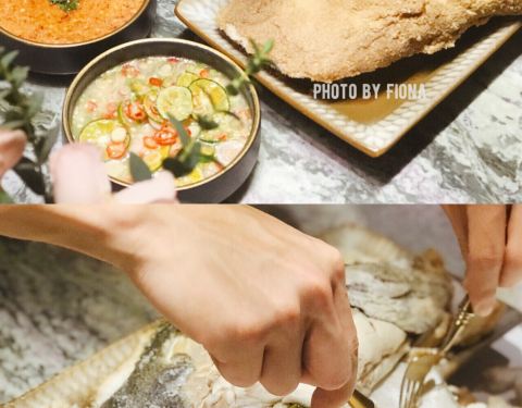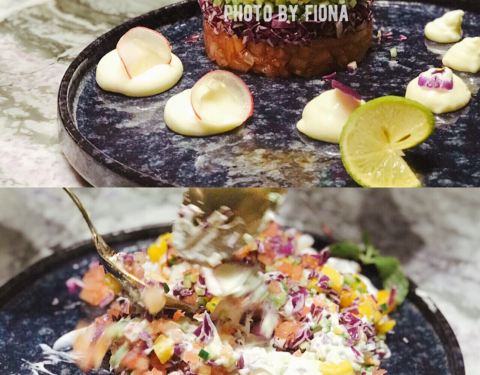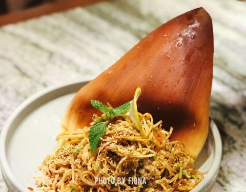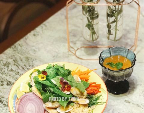 这座别具特色的南洋风格建筑有种独特的魅力让人很想一探究竟,店内水晶吊灯,浪漫的帷幔,拼接花砖地板,华美的装饰……高级复古风无一不体现出店主的品味,不由瞬间爱上。主打越南菜,有身着奥黛的服务员全程服务,恍惚间以为自己是在湄公河边的西贡吃饭。 蟹侯柚子沙拉 当下正是吃柚好时节,颗颗粉嫩的柚子粒犹如少女的娇羞,惹人喜爱,搭配细嫩的带子和越南特有的调味料——鱼露,酸甜中带有一丝苦涩,干冰加持后如梦如幻,这感觉像极了初恋。 低温柠檬三文鱼 低温一直是我很喜欢的烹饪方式,通过这种方法最大程度地锁住汁水减少水分的流失,展现食物的原汁原味。来自法罗群岛的三文鱼肉质细腻肥美,越南青柠和鱼露使这道菜更增添一种别样的风味,不需要复杂的调味,简单原始就是最好。 干牛肉滨海 干煎米粉或檬粉就是滨海,干煎后口感香脆不油腻,自己DIY搭配牛肉、菌菇和时蔬一同送入口中,丰富的口感让人一口一口吃不停。 海鲜帽子火锅 周边一圈“帽檐”上的食材让人垂涎三尺,扇贝,福袋,青菜,鸡肉,大头虾,全部都是新鲜好料,服务员会帮忙烫熟,香浓的汤中融合了食材的鲜甜,真是好喝极了,连喝三碗都觉得不过瘾。