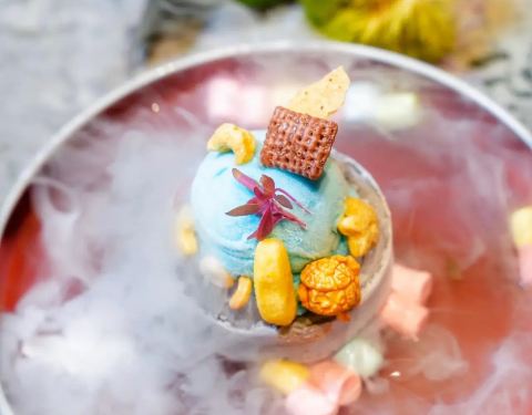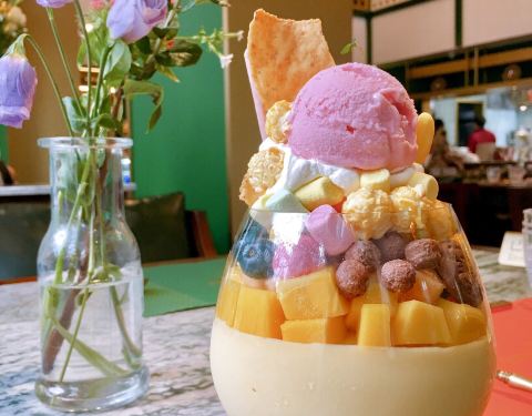 我也是有吃过网红冰淇淋鱼缸的时髦人士啦!一直对朋友晒的鱼缸冻芝士大满足特别心动,这回和朋友带孩子来体验了一番,真是大人孩子都爱得不行了~ 首先整家店的风格就是我的菜,孔雀绿色调在东南亚风情的花砖、饰品映衬下显得异域情调十足又不失时尚优雅,可惜没有化妆不然是个绝佳的拍照场所。 奔着鱼缸冻芝士去的,果然不失所望,比想象还要惊艳。能想象到的我热爱的甜食都加入在这一缸里面,冰淇淋、水果、芝士蛋糕、棉花糖、爆米花等等,一口下去幸福感爆棚了嘤嘤嘤~是会想再去吃一次的美好甜品! 还有缤纷花园便当,光是泰国网红便当盒就让我爱不释手,里头的各种泰式小食样样美味精致,作为解馋下午茶非常棒了。有机会一定要再去试试正餐!