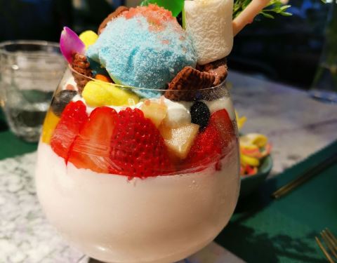 我也是有吃过网红冰淇淋鱼缸的时髦人士啦!一直对朋友晒的鱼缸冻芝士大满足特别心动,这回和朋友带孩子来体验了一番,真是大人孩子都爱得不行了~ 首先整家店的风格就是我的菜,孔雀绿色调在东南亚风情的花砖、...我也是有吃过网红冰淇淋鱼缸的时髦人士啦!一直对朋友晒的鱼缸冻芝士大满足特别心动,这回和朋友带孩子来体验了一番,真是大人孩子都爱得不行了~ 首先整家店的风格就是我的菜,孔雀绿色调在东南亚风情的花砖、饰品映衬下显得异域情调十足又不失时尚优雅,可惜没有化妆不然是个绝佳的拍照场所。 奔着鱼缸冻芝士去的,果然不失所望,比想象还要惊艳。能想象到的我热爱的甜食都加入在这一缸里面,冰淇淋、水果、芝士蛋糕、棉花糖、爆米花等等,一口下去幸福感爆棚了嘤嘤嘤~是会想再去吃一次的美好甜品! 还有缤纷花园便当,光是泰国网红便当盒就让我爱不释手,里头的各种泰式小食样样美味精致,作为解馋下午茶非常棒了。有机会一定要再去试试正餐!