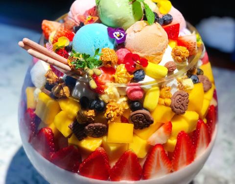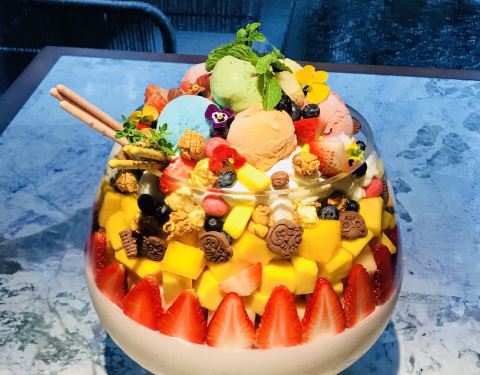 - 最惊艳的是他家的鱼缸冻芝士,满满一大鱼缸的各种冰淇淋,各种水果,冻芝士