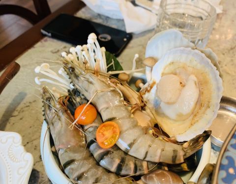 ...都是新鲜好料,服务员会帮忙烫熟,香浓的汤中融合了食材的鲜甜,真是好喝极了,连喝三碗都觉得不过瘾