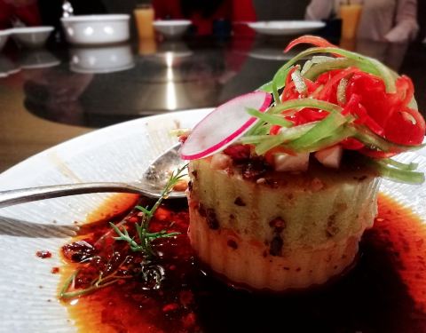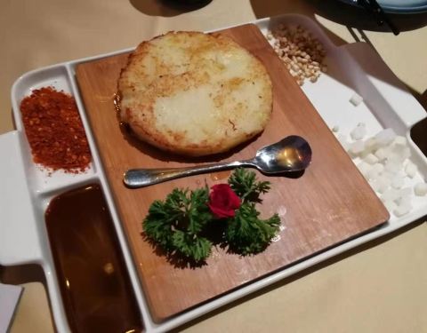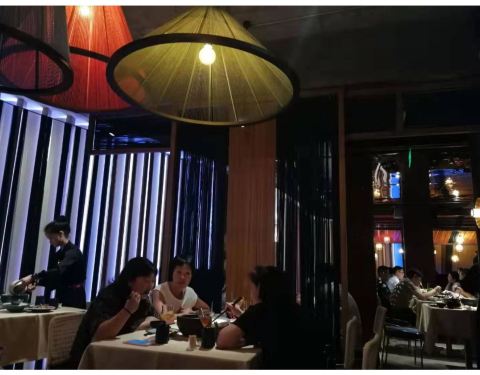 [薄荷]环境: 这家室外露台的座位在这个季节傍晚很舒适很安心,能边品尝美味边欣赏周边的美景。这家餐厅的生意超级的火爆,六点以后就需要你的耐心等位了。 [服务铃]服务: 这里主打的是云贵菜系,个人感觉口味还是属于蛮辣的。这里的服务员很是专业和热情,点餐和上菜的速度也是很快的。 |宫爆板筋^ 口感Q弹、肉质嫩滑、辣度合适,这道菜只有小时候在家里的时候吃到过,好久都没有吃过了。 |毕节爆浆小豆腐^ 个人最喜欢这道菜,外脆里嫩、清淡可口、入口爆浆,解腻解辣。 |蕨粑炒腊肉^ 搭配完美、香气诱人、口感超棒。 |辣子鸡^ 鸡肉很嫩、腌制入味、后劲十足。