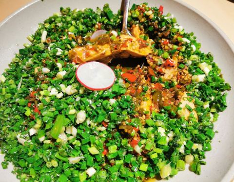 来山石榴,用这口藤椒麻辣的椒麻鸡,开启火热的夏天模式拉 一走他家就感觉非常的放松,不仅有充满名族特色的滕艺装饰,更有时下年轻人最爱的酒吧风格,我可不会告诉你,那一排排的都是贵州茅台呢[偷笑][偷笑][偷...来山石榴,用这口藤椒麻辣的椒麻鸡,开启火热的夏天模式拉 一走他家就感觉非常的放松,不仅有充满名族特色的滕艺装饰,更有时下年轻人最爱的酒吧风格,我可不会告诉你,那一排排的都是贵州茅台呢[偷笑][偷笑][偷笑] 贵州菜特点就是酸辣 这道椒麻鸡绝对是招牌推荐,上来看着都是葱花还以为是葱油鸡呢,结果拌开一吃,这辣劲🤣 🤣 🤣 提神醒脑哦 更有包浆豆腐,口感层次丰富,外皮的酥,里面的豆腐却滑嫩如水[强][强][强] 最后来上一碗冰粉,解腻可口哦,麻辣开启,甜蜜结尾,完美一宴