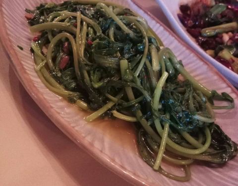 工作日午市过去虽然上座率蛮高但还是不需要等位的。翻翻菜单,感觉品种不多,感兴趣的更少,也就随别人点吧。餐厅环境太暗,个人不喜欢,服务员忙到上了第一个菜也没时间给我们倒杯水,后面加水更是千呼万唤。 点...