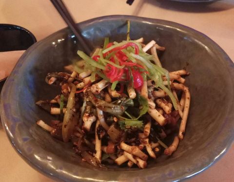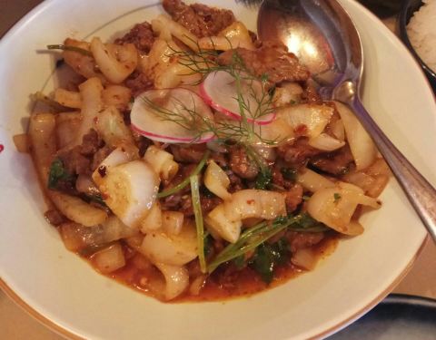 糟辣炒肉片,量挺足的,这道菜不是很辣,肉也比较嫩。好评挺高的一家店,据说要排队很久,就特意很早前来